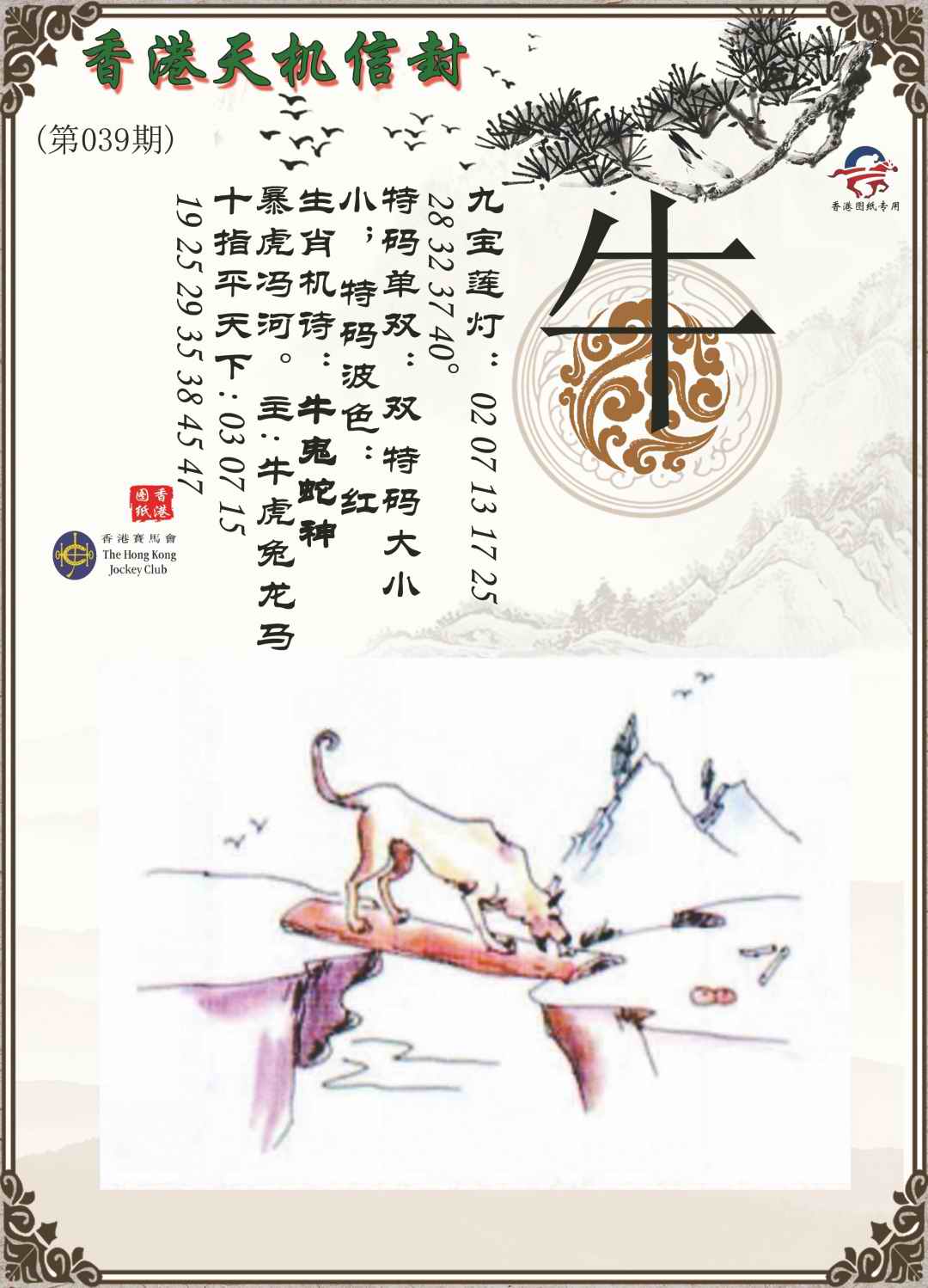 | 037期 | 单数+牛兔 | 開:马49准 |