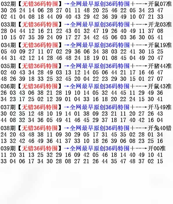 | 038期:⑿码 | 11.47.42.18.12.36.26.20.05.09.07.40 | 開:兔40准 |