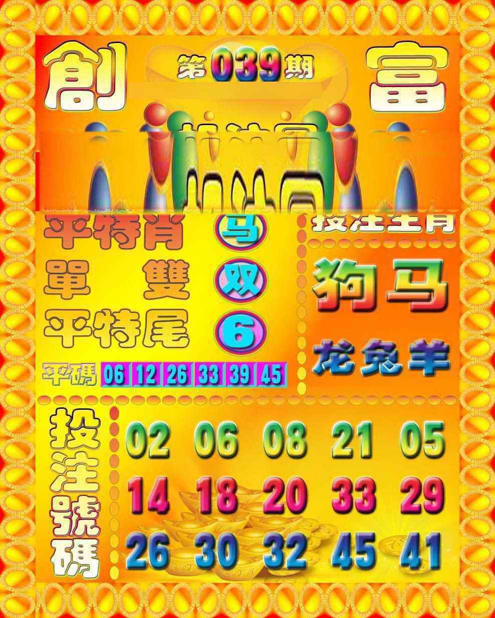 | 038期 | 双数+猴鼠 | 開:?00准 |